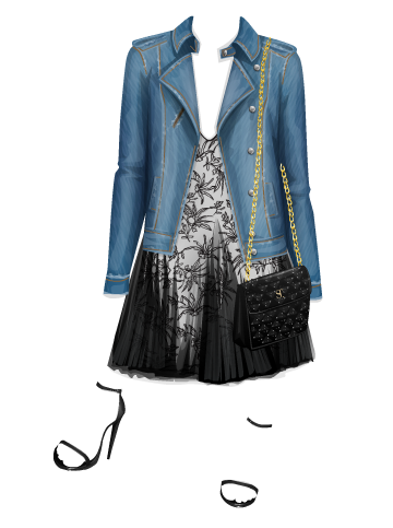 O segundo look é simples. Pegue um outfit de noite e levei a jaquetinha para o caso de esfriar. Gente, fica muito cool. Eu tenho umas trocentas camisas jeans e todas são batidas! Não tem peça mais versátil!!!