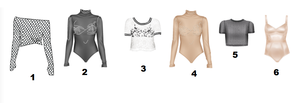No quesito roupas temos poucas pra quase nada nude ai que entra a nossa transparência querida pois o meu sonho era poder falar da moda nude com lindos itens de couro nos tons certos mas o jogo não ajuda! No quesito Tops eu achei dois bodys tons nudes pro tom de pele claro mas achei vários itens lindes com transparência. Agora aquela dica de ouro : Essa moda tanto nude quanto roupas com transparência ficam uma linha tênue entre o fashion e o vulgar por isso vamos ter um cuidado pra não usar da maneira errada.